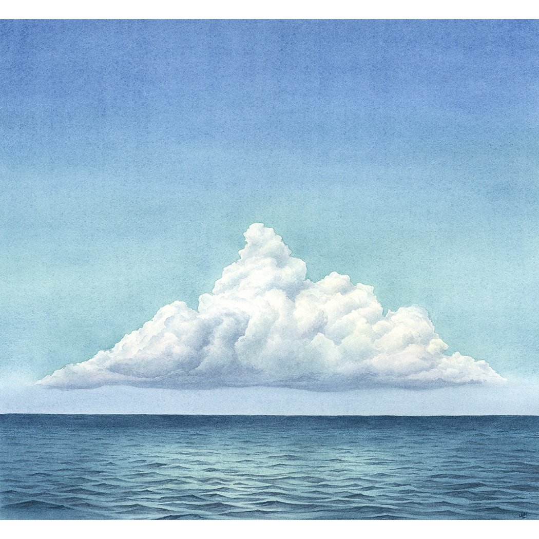Original watercolor painting. Sometimes a single cloud becomes the main character of the sky. Watercolor on hot press paper, 15” by 15” unframed. Inquire about framed options.